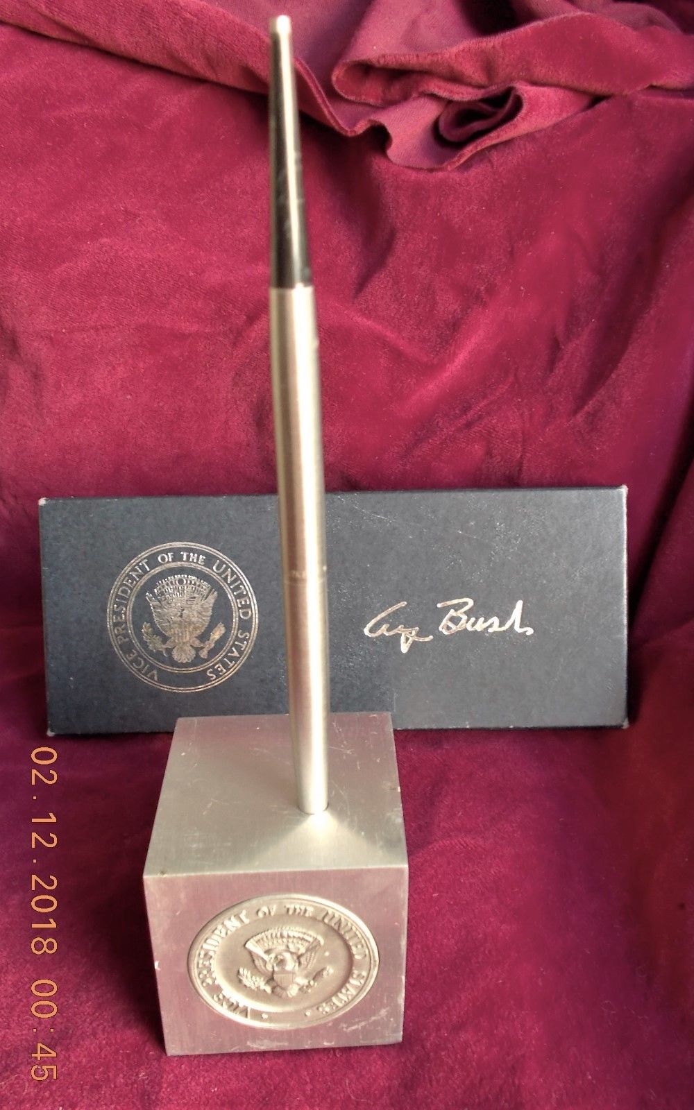 Title (ebay affiliate link): 1981 Vice President George Bush Paperweight Pen Desk Set