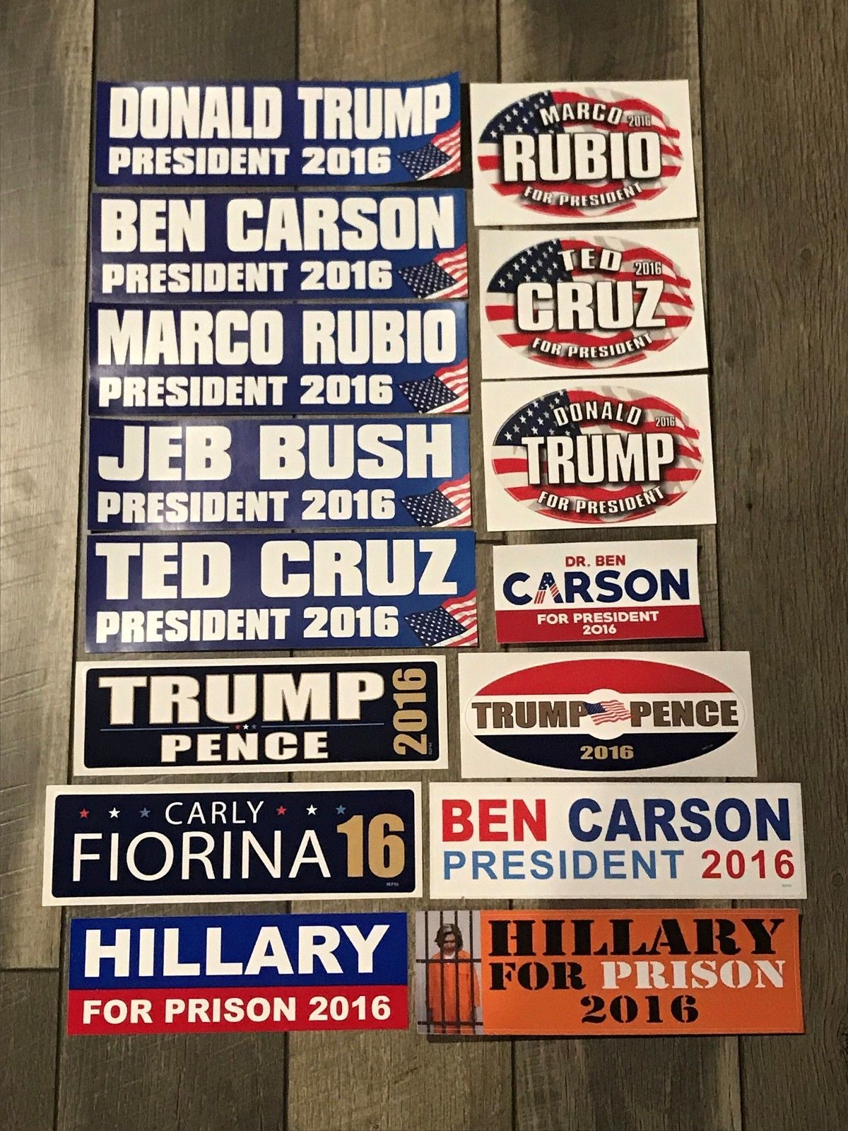 Title (ebay affiliate link): Lot Collection of 15 Republican President Candidate Trump Carson Cruz Stickers