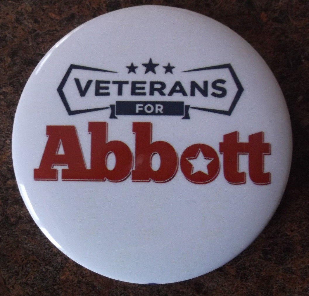 Title (ebay affiliate link): 2018 TEXAS Republican GREG ABBOTT for Governor Button VETERANS SUPPORT