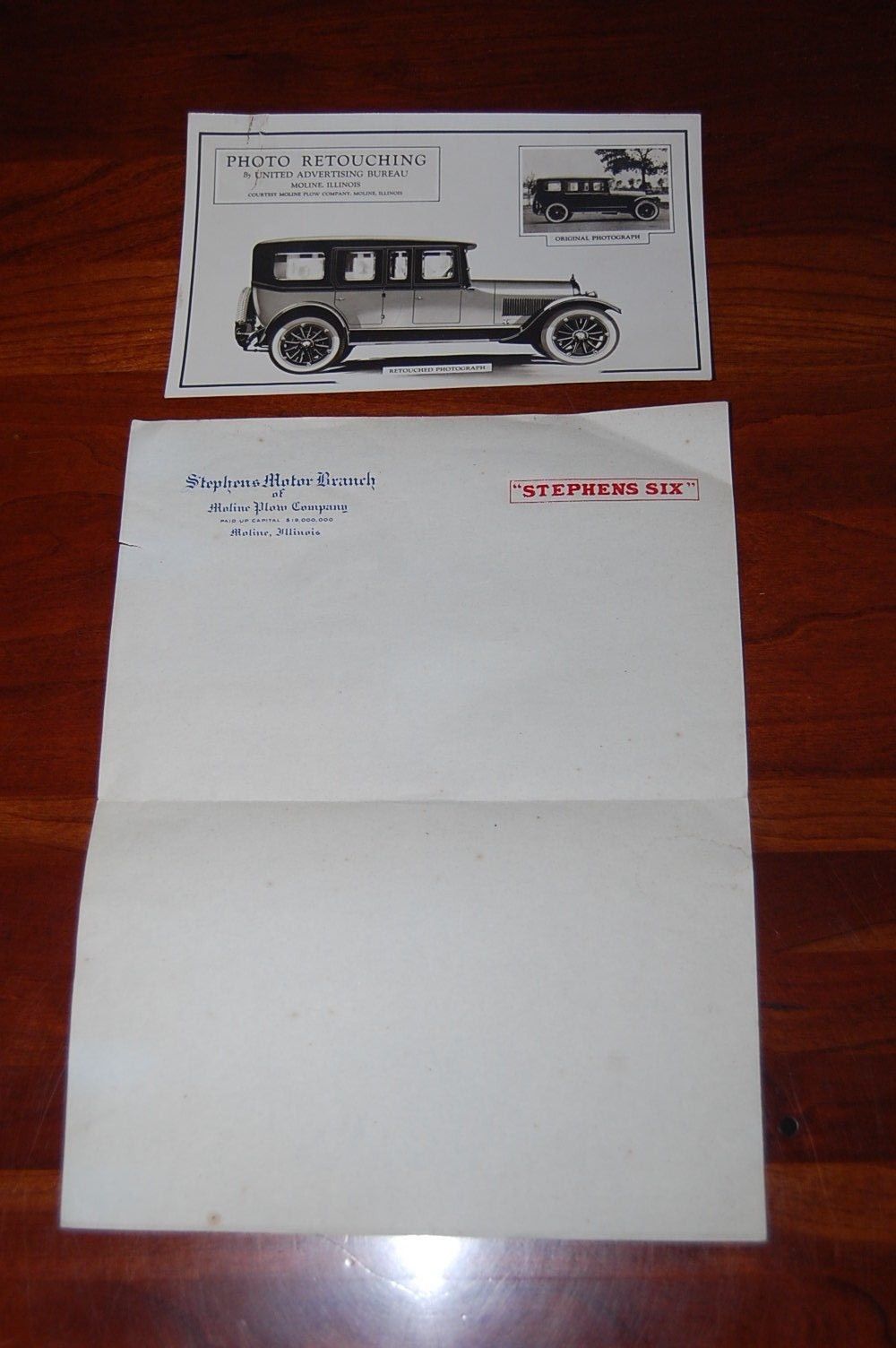 1920''S STEPHENS SIX MOLINE PLOW COMPANY LETTER HEAD + PHOTO OF AUTOMOBILE SCARCE