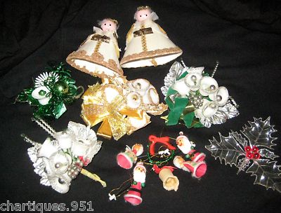 Title (ebay affiliate link): LOT VTG EARLY XMAS ORNAMENT CORSAGE~ANGEL~SANTA MOBILE