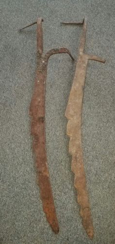 Title (ebay affiliate link): 2 VINTAGE ANTIQUE HAY KNIVES SAW CUTTER SCYTHE FARM BARN DECOR 36" LENGTH