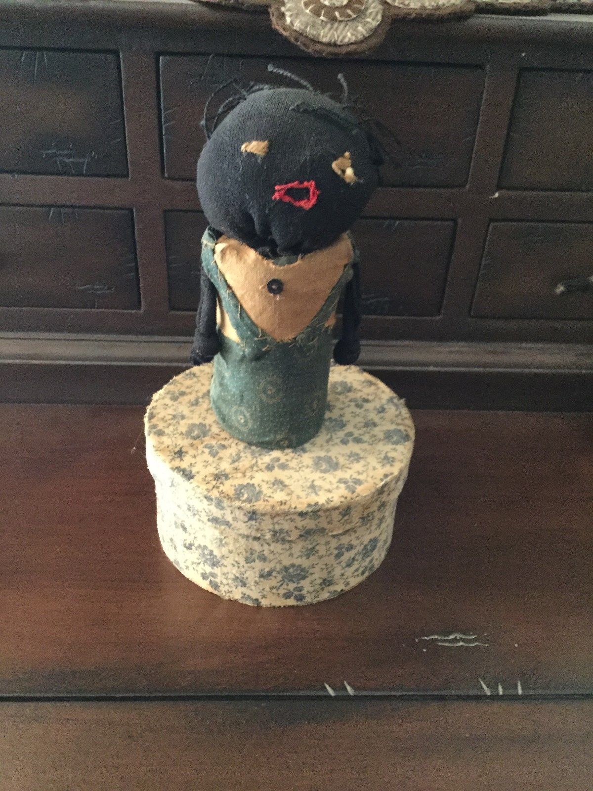 Title (ebay affiliate link): PRIMITIVE BLACK CLOTH BOTTLE DOLL AND FABRIC COVERED BOX