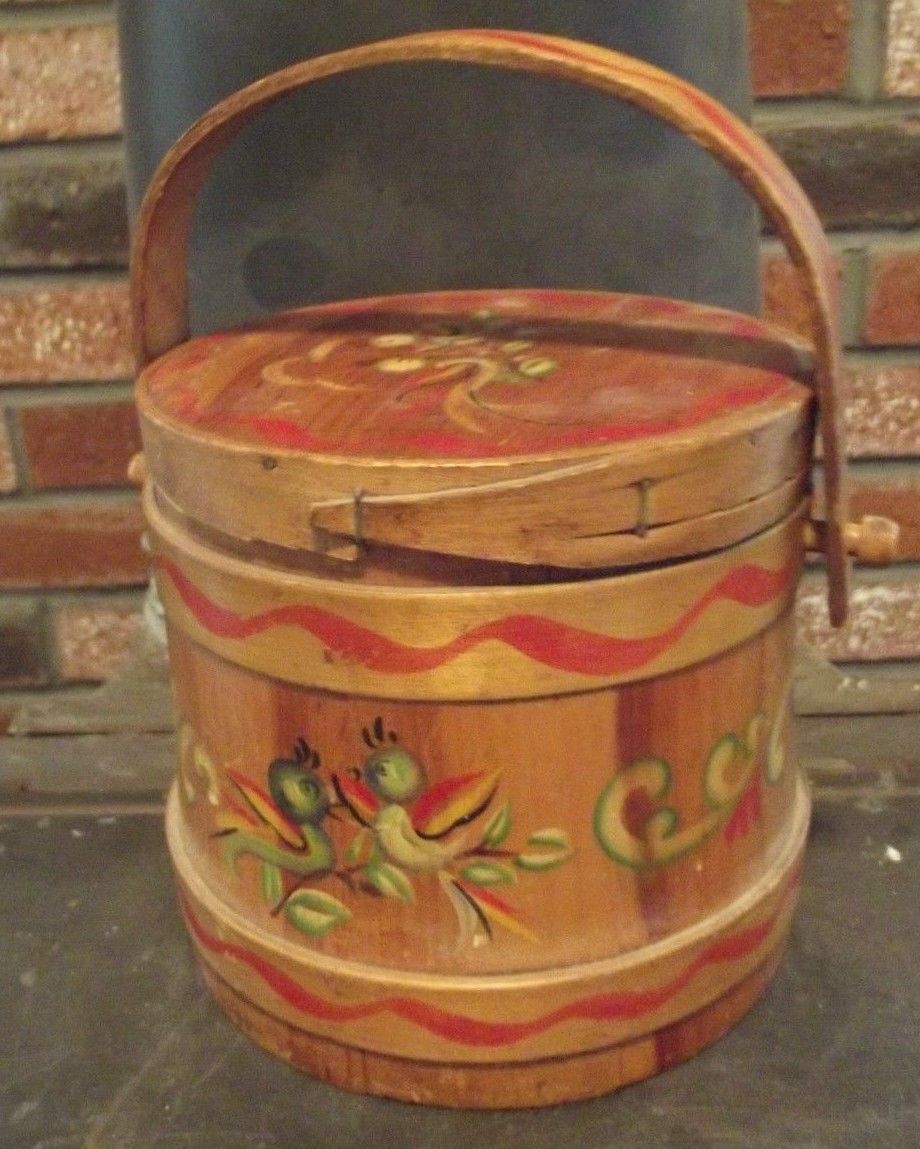 Title (ebay affiliate link): Vintage Small 5" Firkin Wood Sugar Bucket Hand Painted Fruit Design Excellent