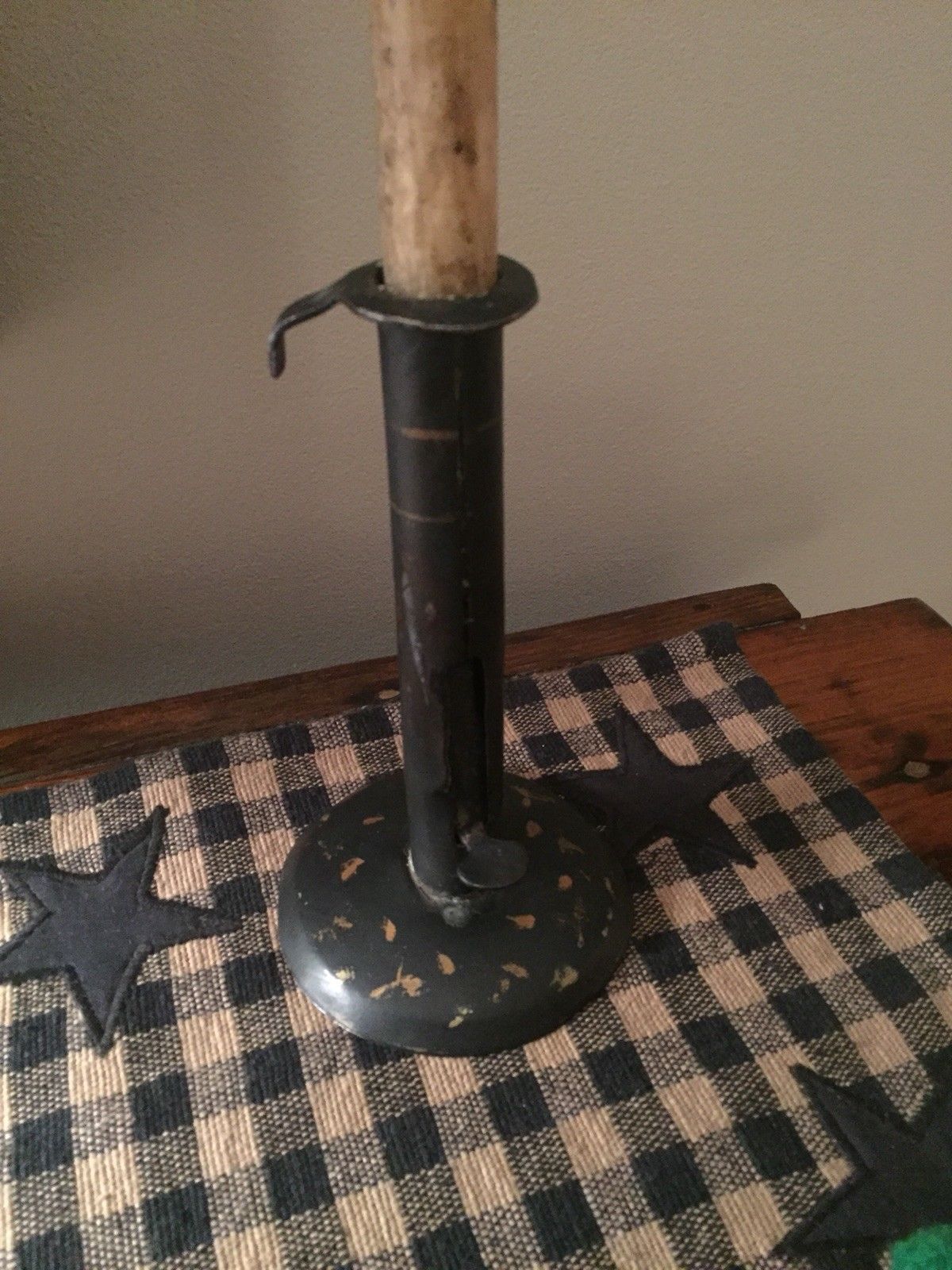 Title (ebay affiliate link): 18th century paint decorated hog scraper candle stick