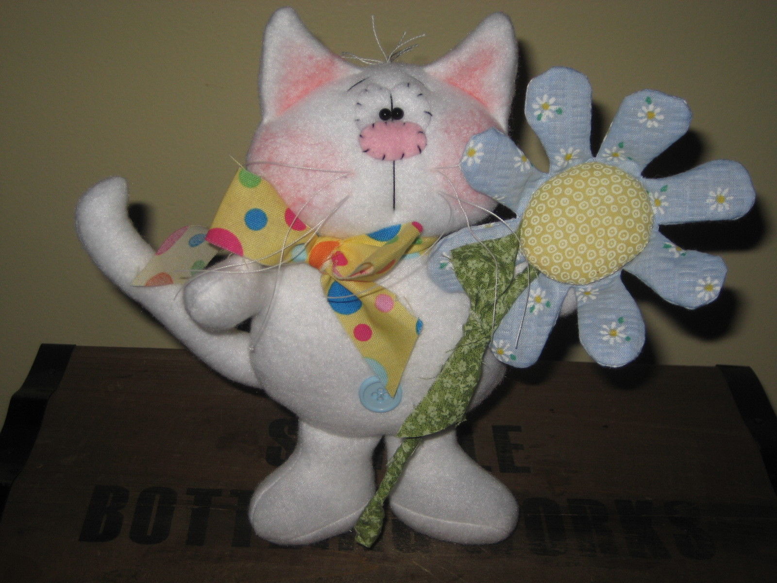 Title (ebay affiliate link): PRIMITIVE HC STANDINGKITTY CAT DOLL WITH dAISY FLOWER SHELF SITTER ORNIE