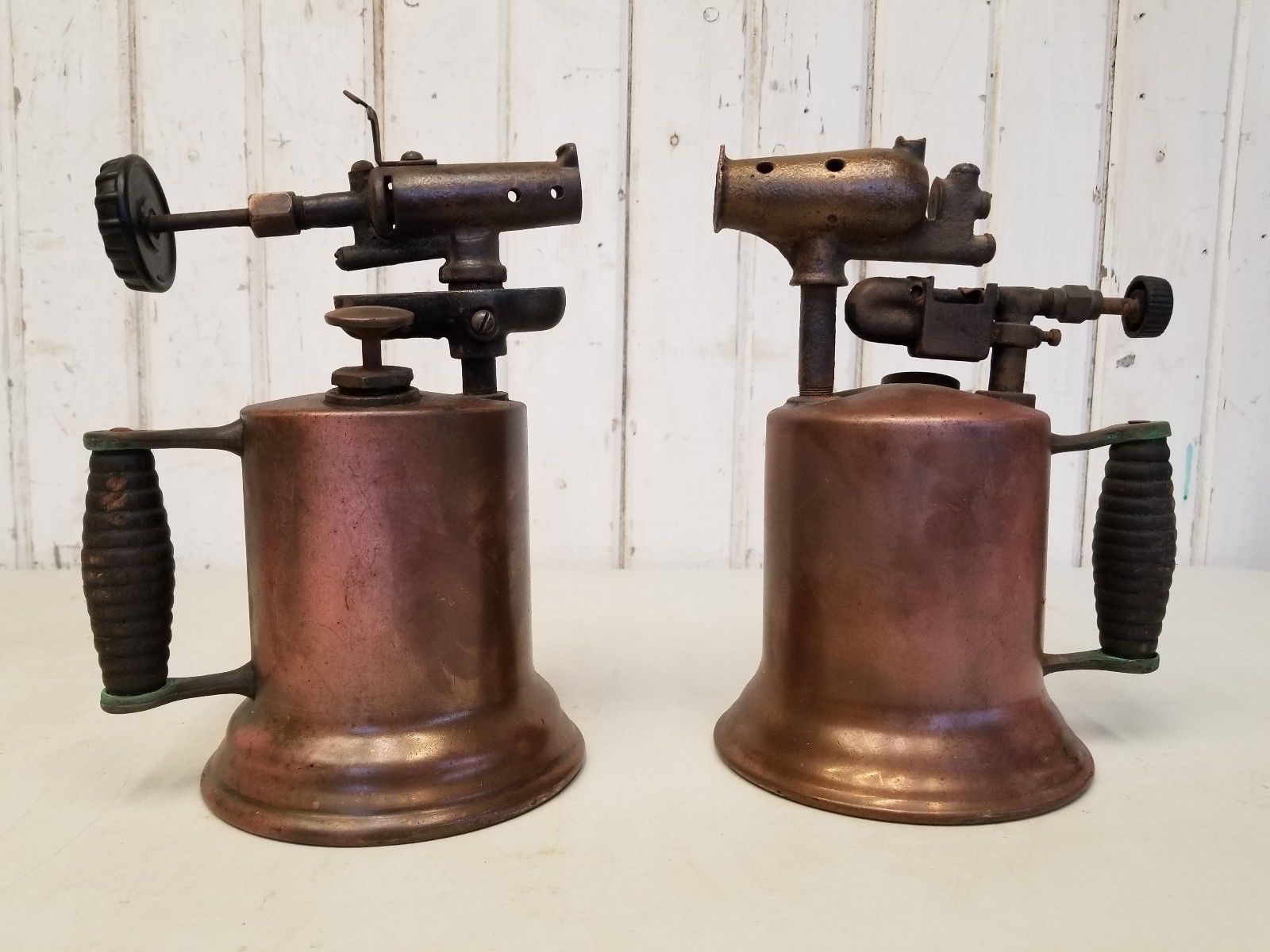 Title (ebay affiliate link): 2 Antique Vintage Brass Blacksmith Blow Torches ~ Forge Metal Working Tool