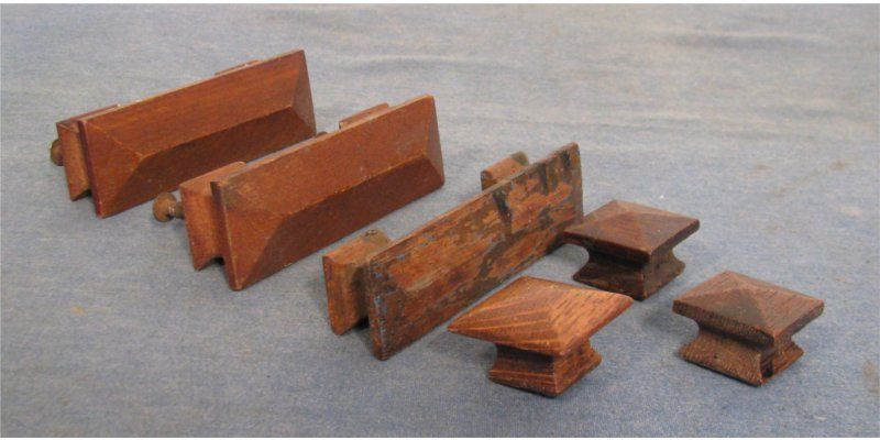 set of 6 assorted vintage wood Mission pulls handles knobs