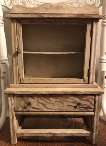 Vintage Wooden Childrens Wooden Cabinet Hutch Dresser Toy Furniture