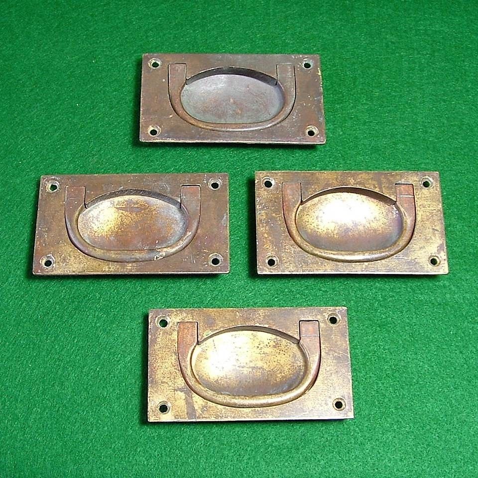 Title (ebay affiliate link): ANTIQUE SOLID BRASS FLUSH FITING DRAW HANDLES for CAMPAIGNE CHEST of DRAWERS ETC