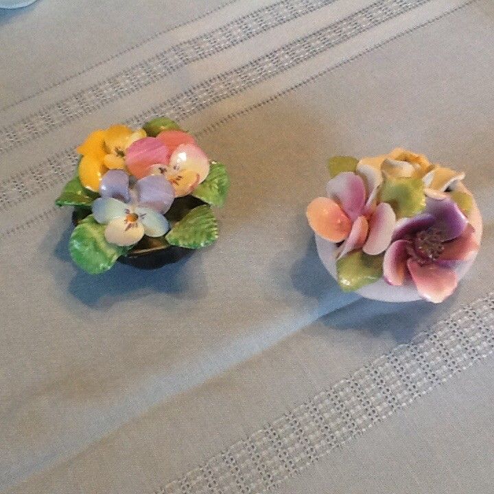 Title (ebay affiliate link): 2 Capodimonte small vase porcelain flowers minor chips Coalport Thorley England