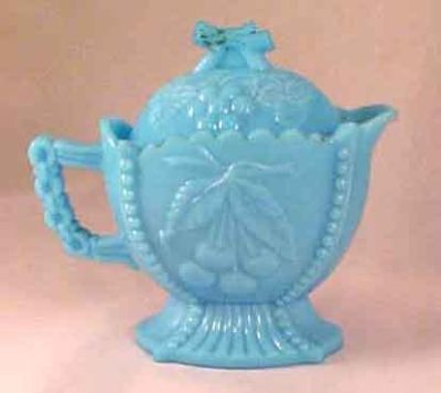 WESTMORELAND BLUE MILK GLASS CHERRY & GRAPE CREAMER LID
