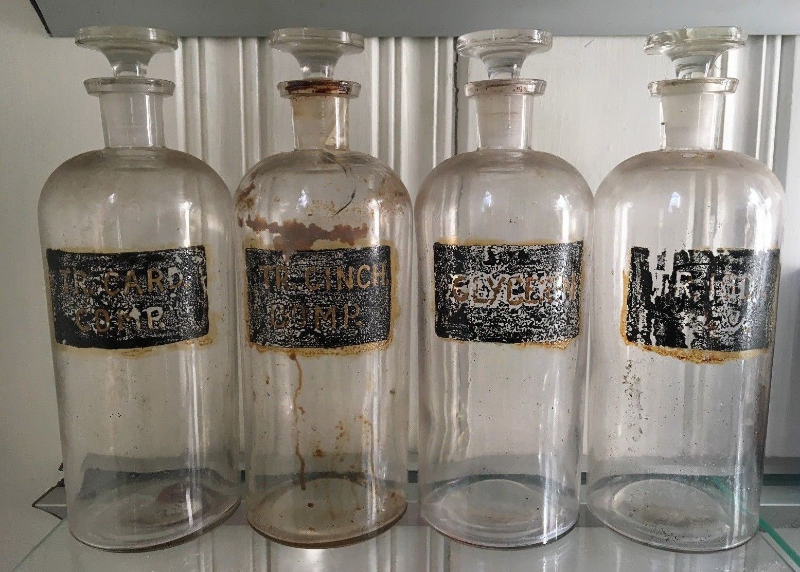 Title (ebay affiliate link): LOT 4 ANTIQUE OLD painted glass Pharmacy Chemistry Bottles medicine apothecary