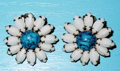 Vintage Signed Weiss Milk Glass & Marbled Earrings.