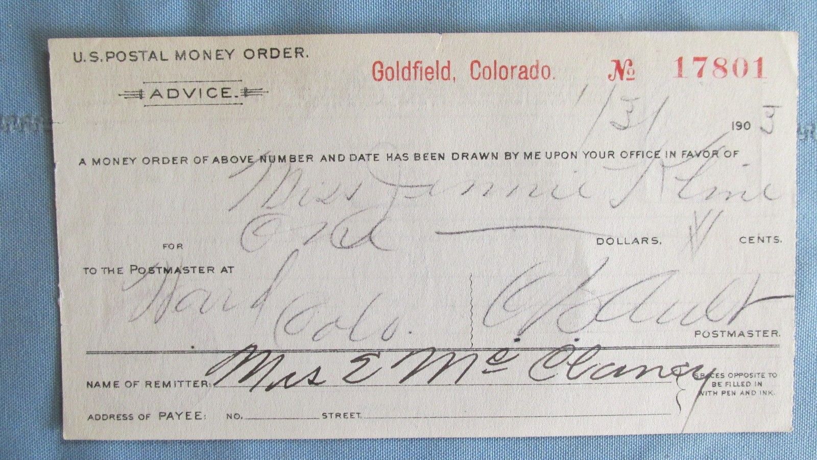 Title (ebay affiliate link): 1903 Goldfield Colorado Postal Money Order-Ward Colorado Post Mark-Mining Towns
