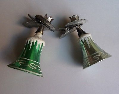 2 Antique CHRISTMAS CLIP ON CANDLE HOLDERS with BLOWN GLASS BELLS
