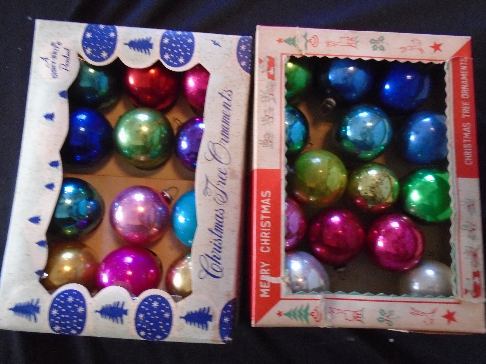 Title (ebay affiliate link): 26 MERCURY GLASS FEATHER TREE ORNAMENTS LARGER SIZE WITH BOXES "SHINEY-BRITE"