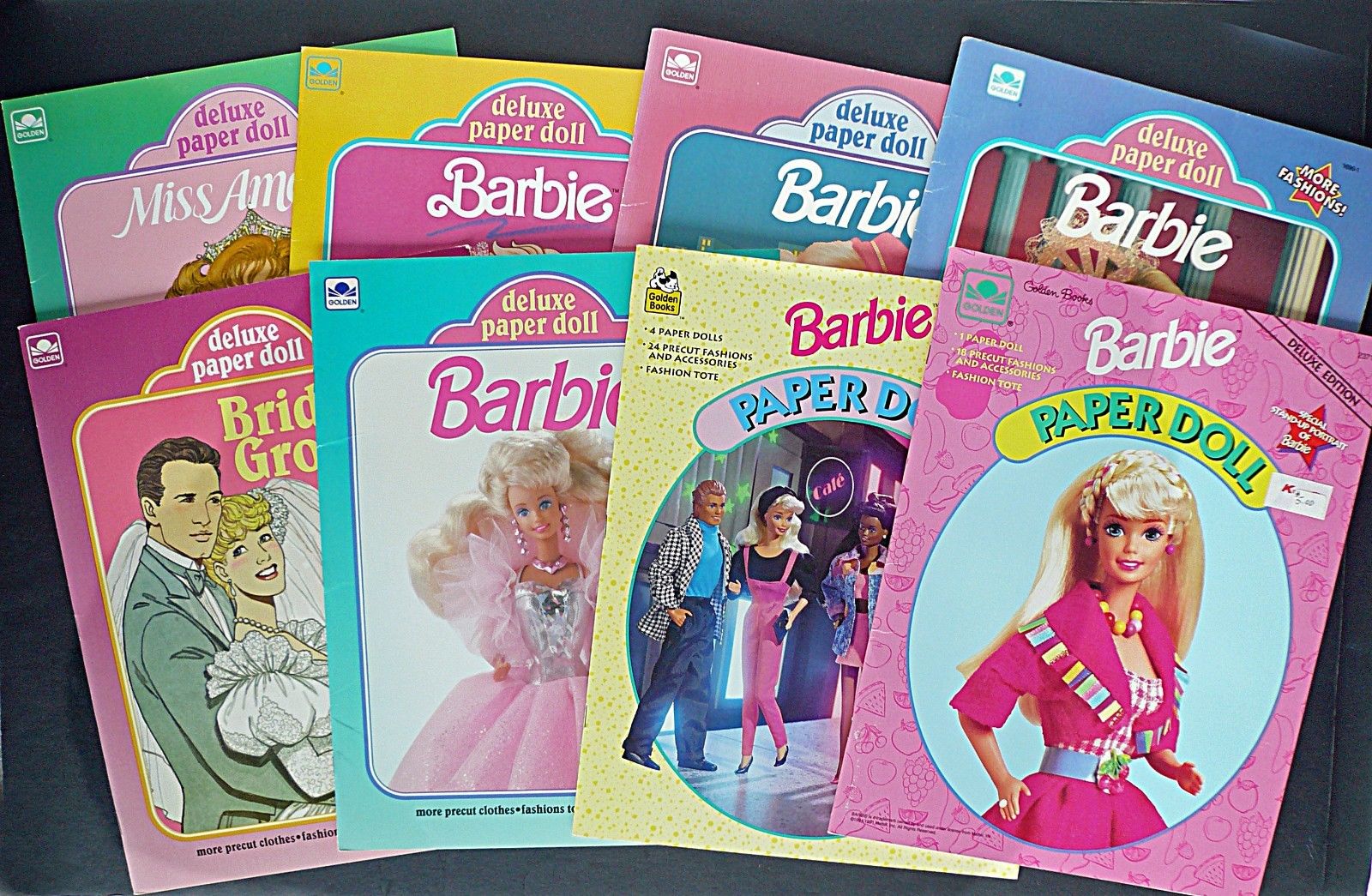 Title (ebay affiliate link): BARBIE DELUXE PAPER DOLLS + BRIDE & GROOM + MISS AMERICA Lot of 8 UNCUT 1990''s