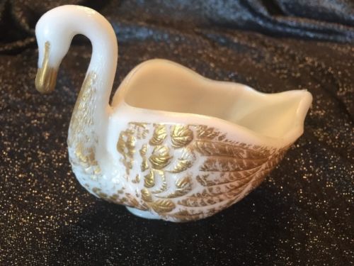 Title (ebay affiliate link): Vintage IMPERIAL GLASS Open Swan Milk Glass White With Gold OverlaySalt Nut Dish
