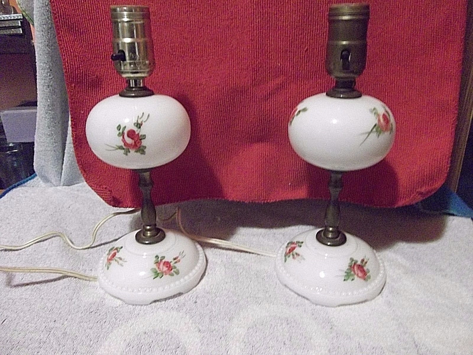 Title (ebay affiliate link): VINTAGE PAIR OF VANITY/BED MILK GLASS PAINTED ROSES LAMPS works great