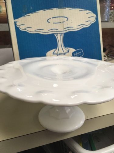 Title (ebay affiliate link): Indiana Glass Teardrop White Milk Glass Cake Stand W/Original Box EXC!
