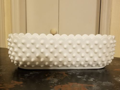 Title (ebay affiliate link): White Milk Glass Hobnail Ruffled Edge Serving Dish. Excellent condition!