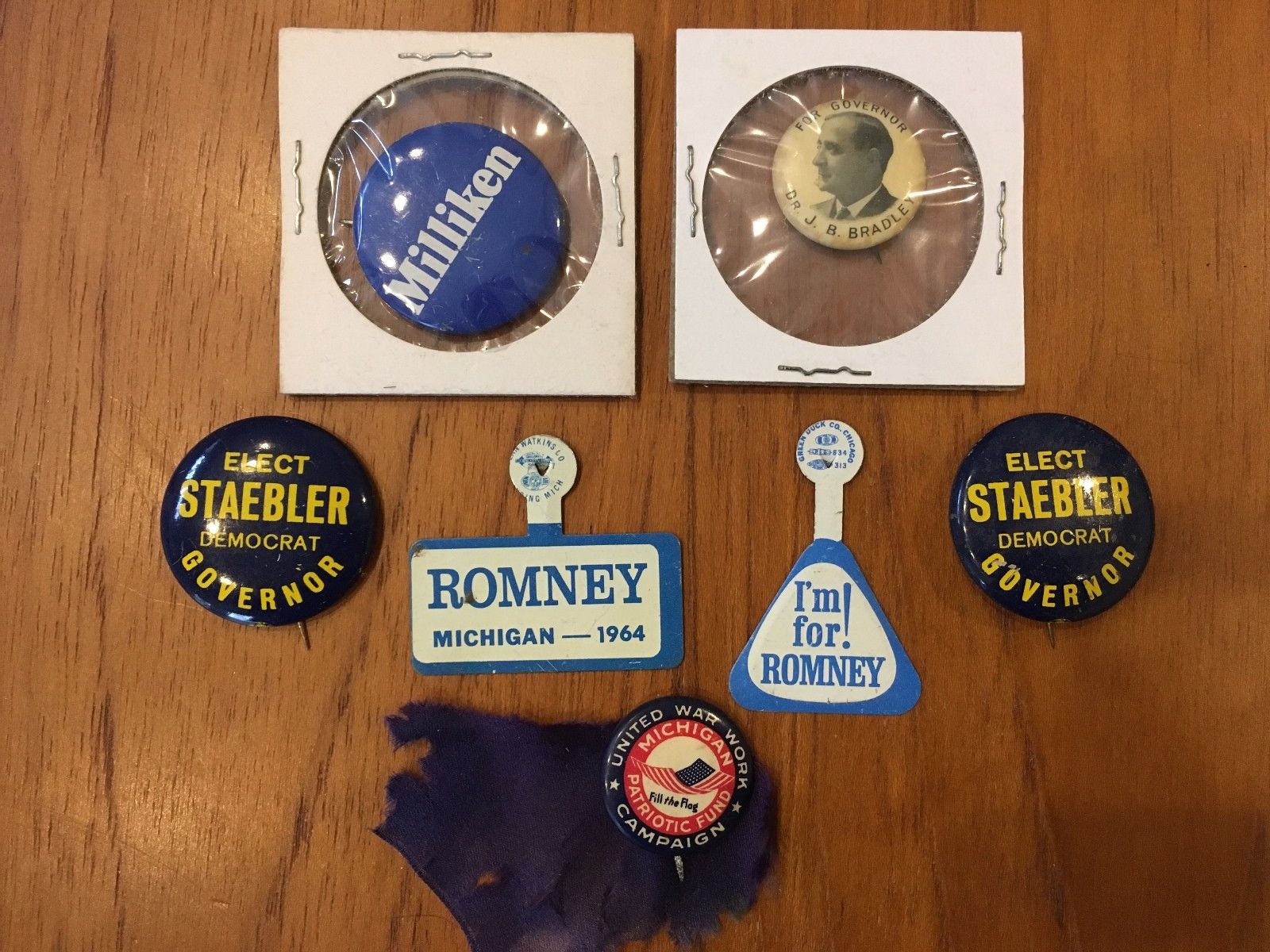 vintage lot MICHIGAN campaign buttons - Staebler, Bradley, Milliken, Romney