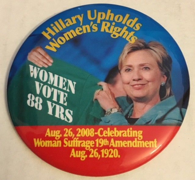 Title (ebay affiliate link): 3" Hillary Upholds Women''s Rights "Celebrating Woman Suffrage" Cause Pin Button