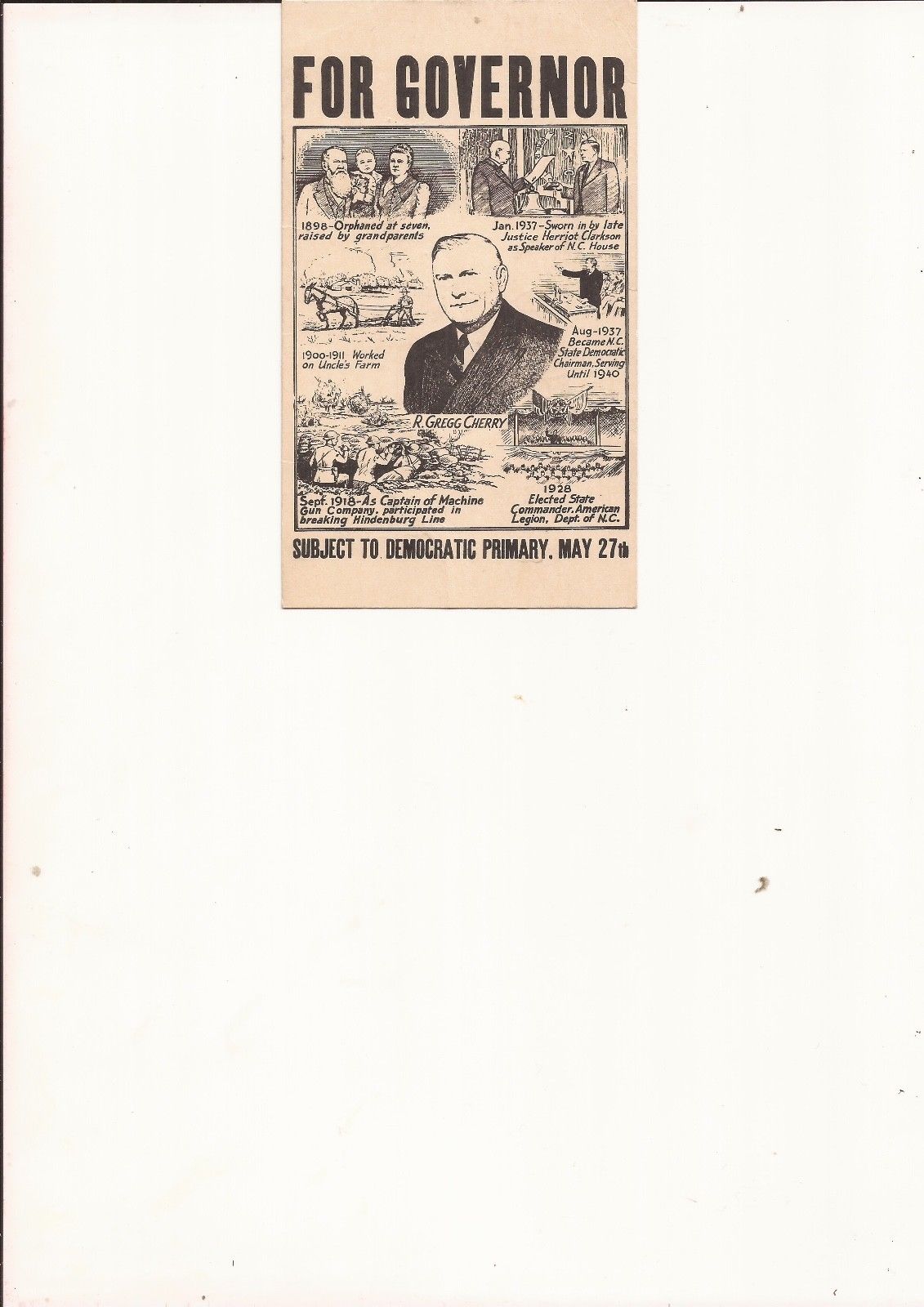 Title (ebay affiliate link): Warrenton, N. C. 1944 R. Gregg Cherry for governor ad card