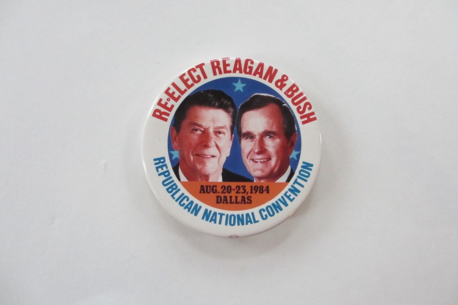 Title (ebay affiliate link): Reagan & Bush 1984 Picture Button-Re-Elect Reagan & Bush-Rep. Nat''l Convention