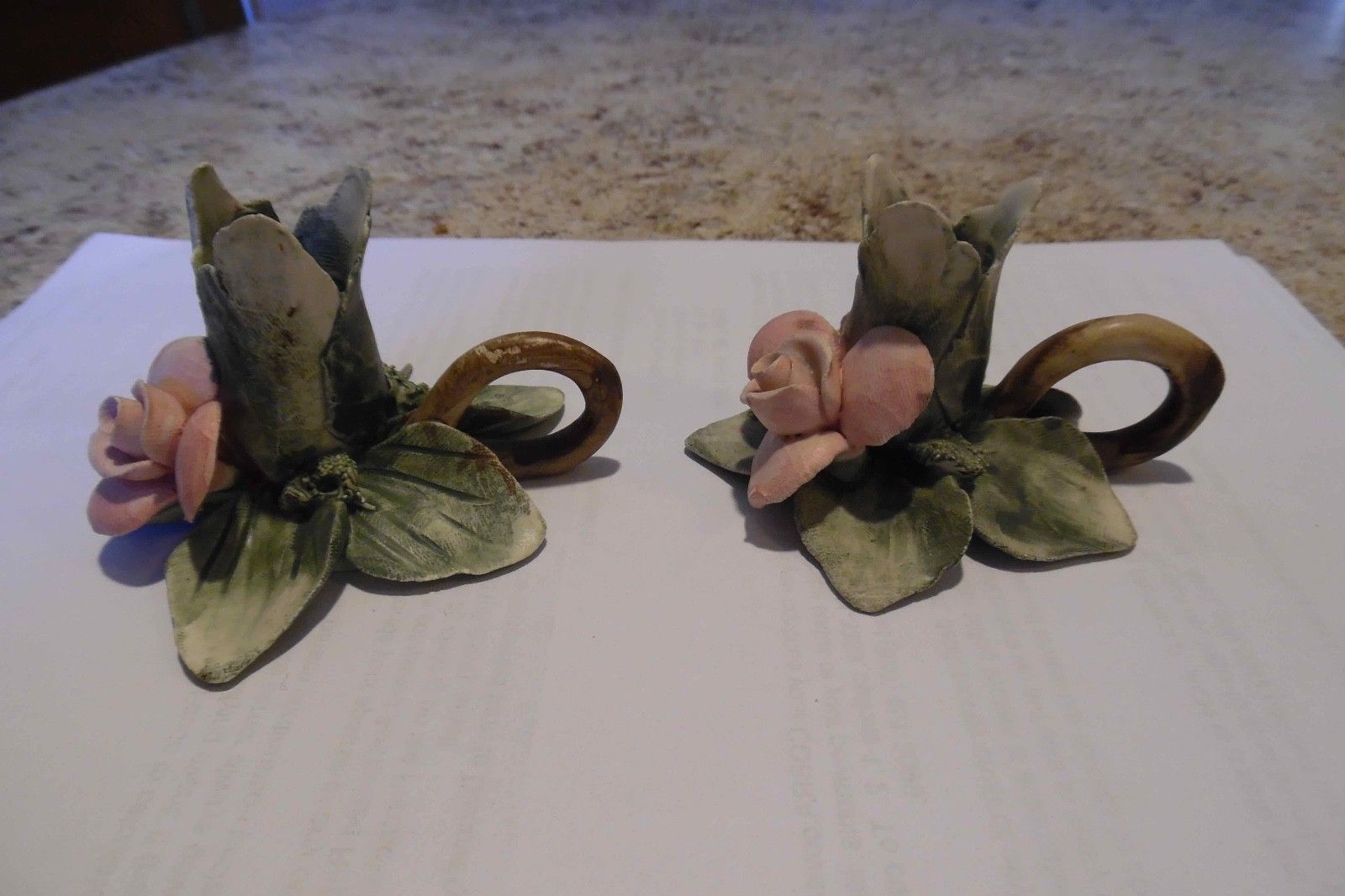 Title (ebay affiliate link): Pair of Capodimonte Porcelain Pink Rose Taper Candle Stick Holders