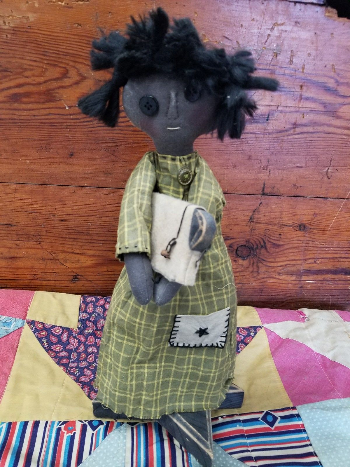 Primitive Doll On Wooden Star Stand