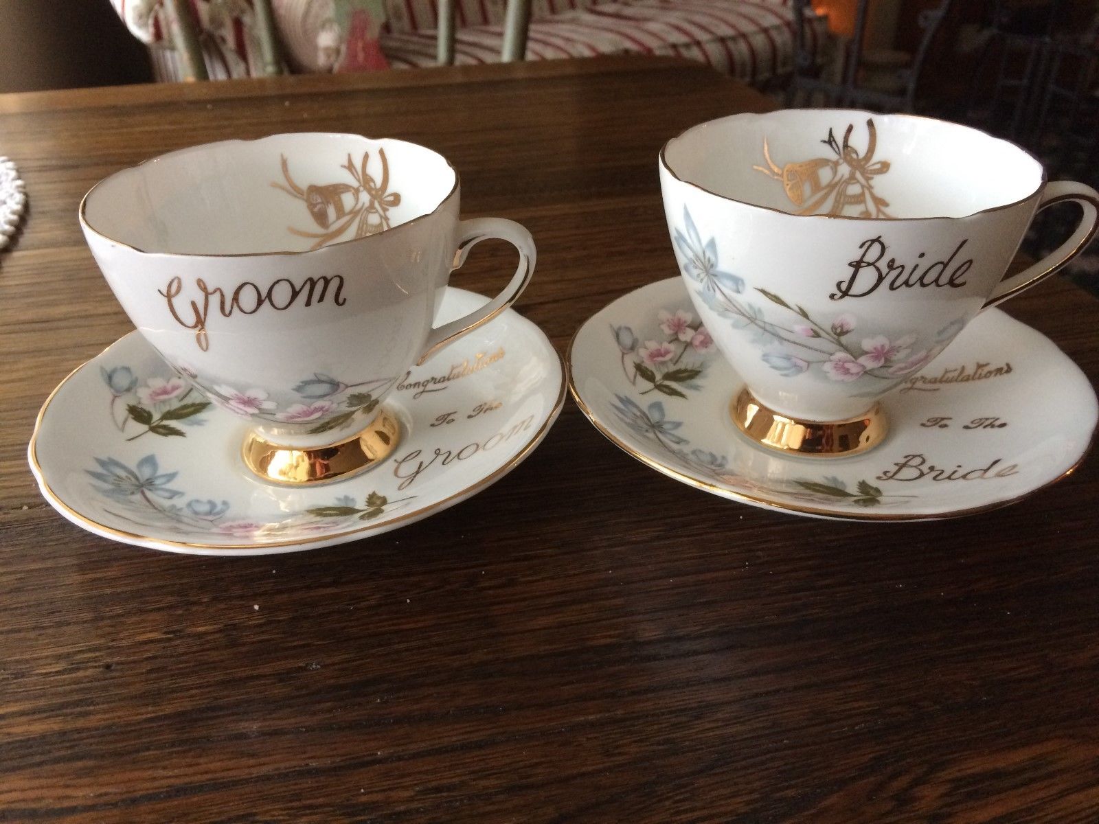 Vintage Bride and Groom Cup and Saucer Set, Gladstone China