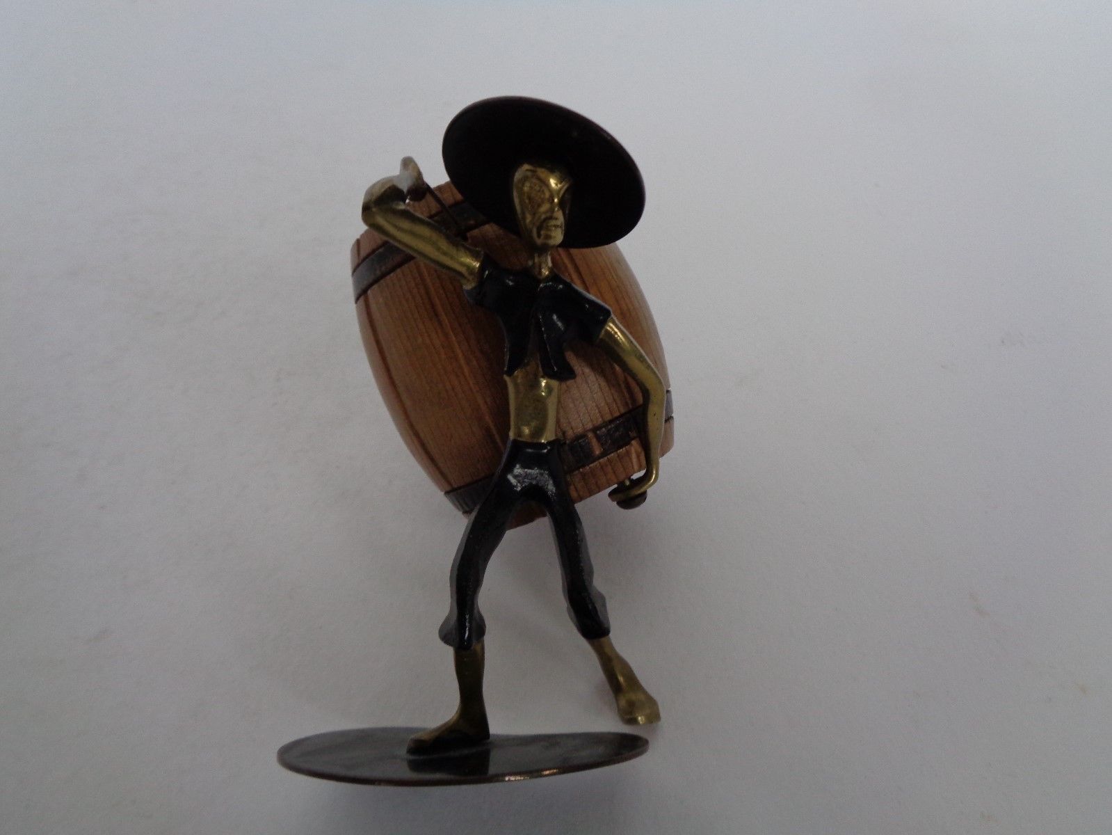 HAGENAUER BRONZE CHINESE FIGURE WITH WOODEN BARREL 1950