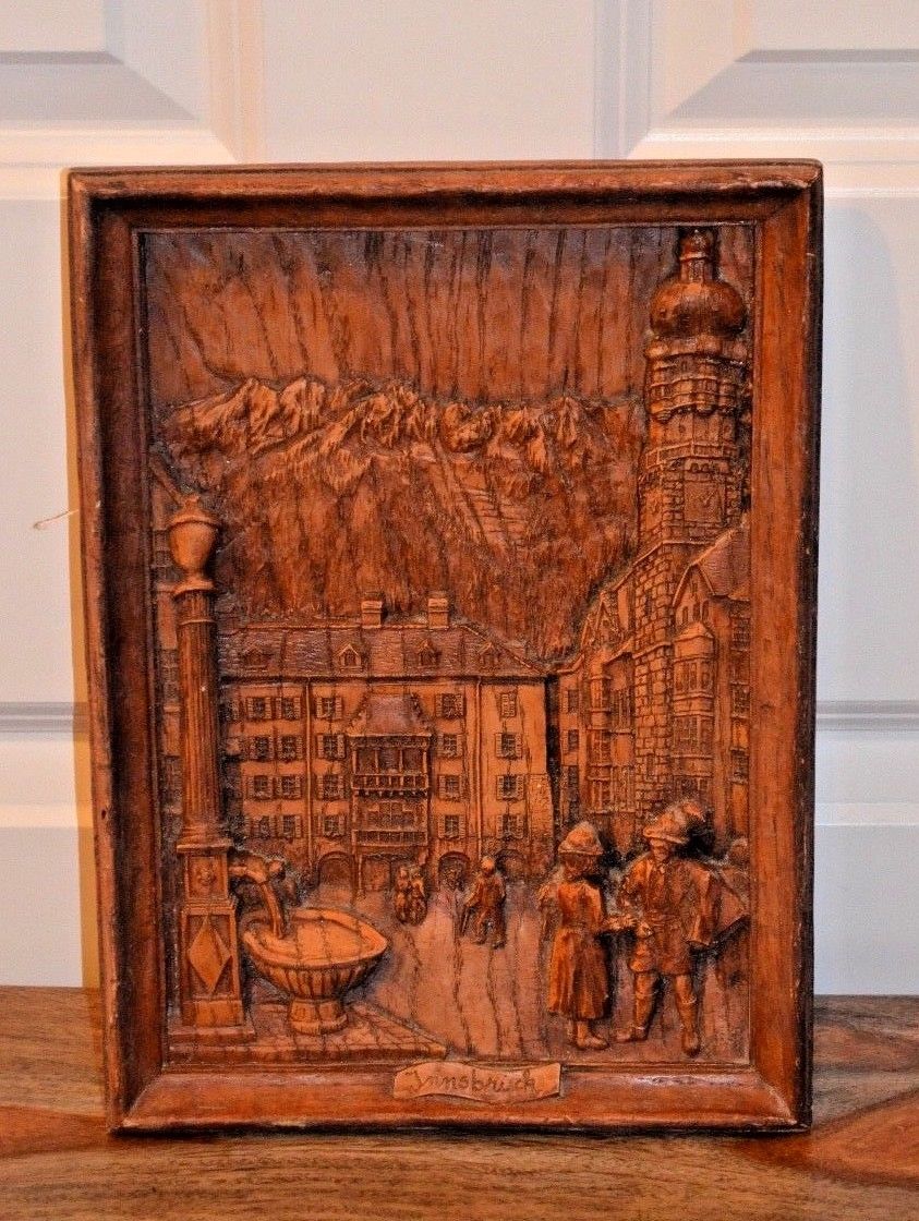 Vintage Hand Carved Wooden Picture Of Innsbruck 9" x 12" RARE