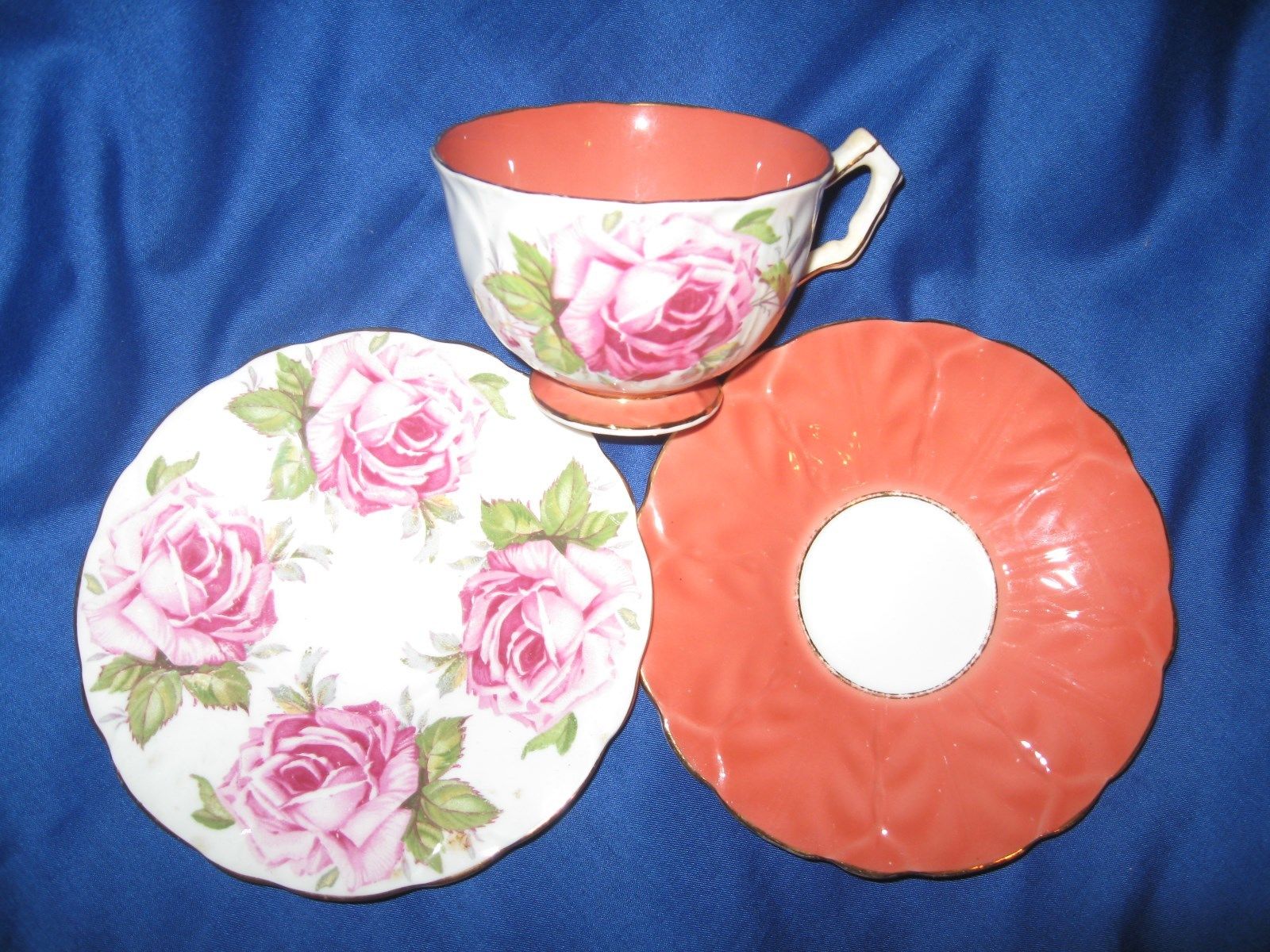 VINTAGE AYNSLEY BONE CHINA CUP AND 2 SAUCERS OLD OLD LQQK
