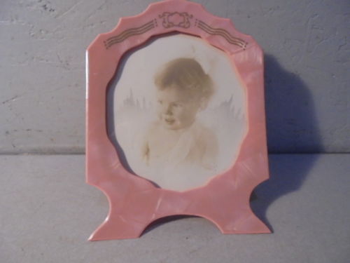 Title (ebay affiliate link): Vintage Pink Celluloid Picture Frame W/child Picture 6 3/4" x 4 3/4"