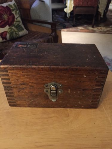 Title (ebay affiliate link): Vintage Wooden Storage Box with Dovetailed Design With Advertising 4.25" Tall