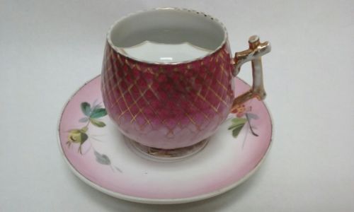 Vintage pink porcelain mustache cup with matching saucer