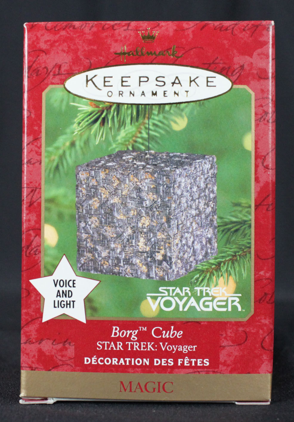 Title (ebay affiliate link): Vintage Hallmark Keepsake Ornament Star Trek Voyager Borg Cube Voice Light Boxed