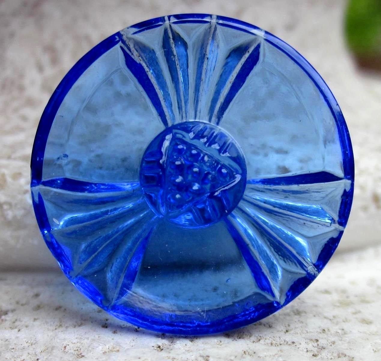 Title (ebay affiliate link): Beautiful Antique Vintage BLUE Depression GLASS FLOWER Motif Buton