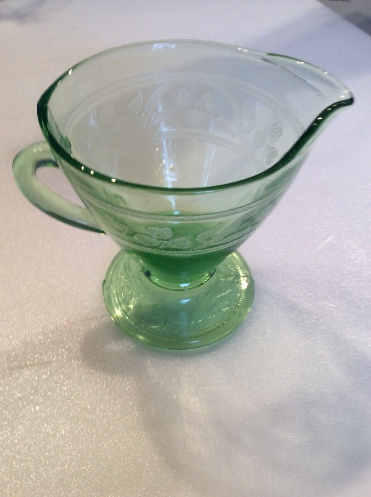 Green Depression Glass Cloverleaf Creamer