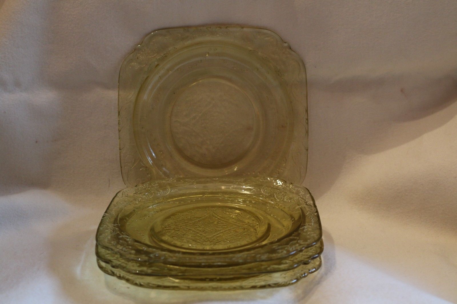 Title (ebay affiliate link): 4 VINTAGE 6" Madrid Bread & Butter Plates Federal Depression Glass Yellow Amber