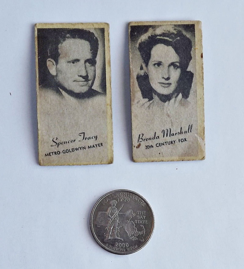 Title (ebay affiliate link): Peerless Vending Engrav-o-tints Movie Star Cards Spencer Tracy Brenda Marshall