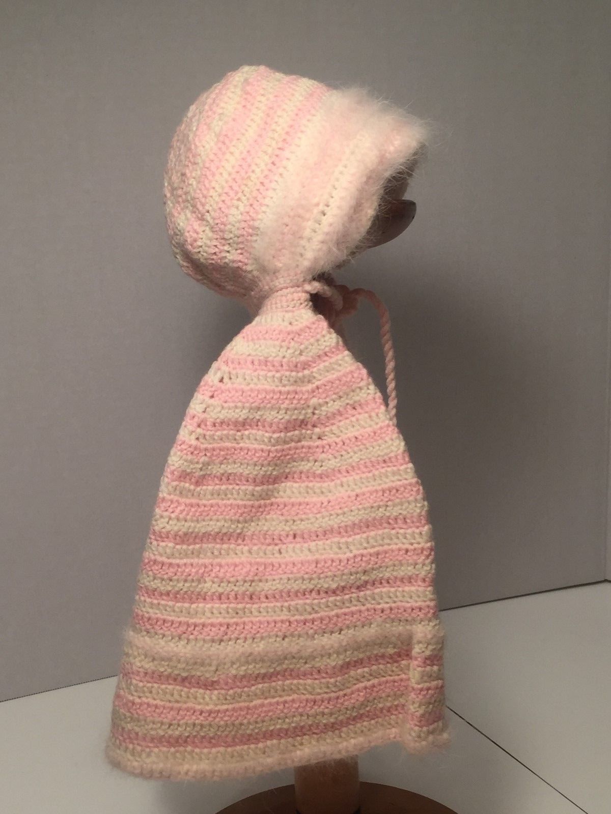 Title (ebay affiliate link): VINTAGE ANTIQUE PINK AND WHITE HAND CROCHETED DOLL CAPE W/ANGORA FUR! BEAUTIFUL