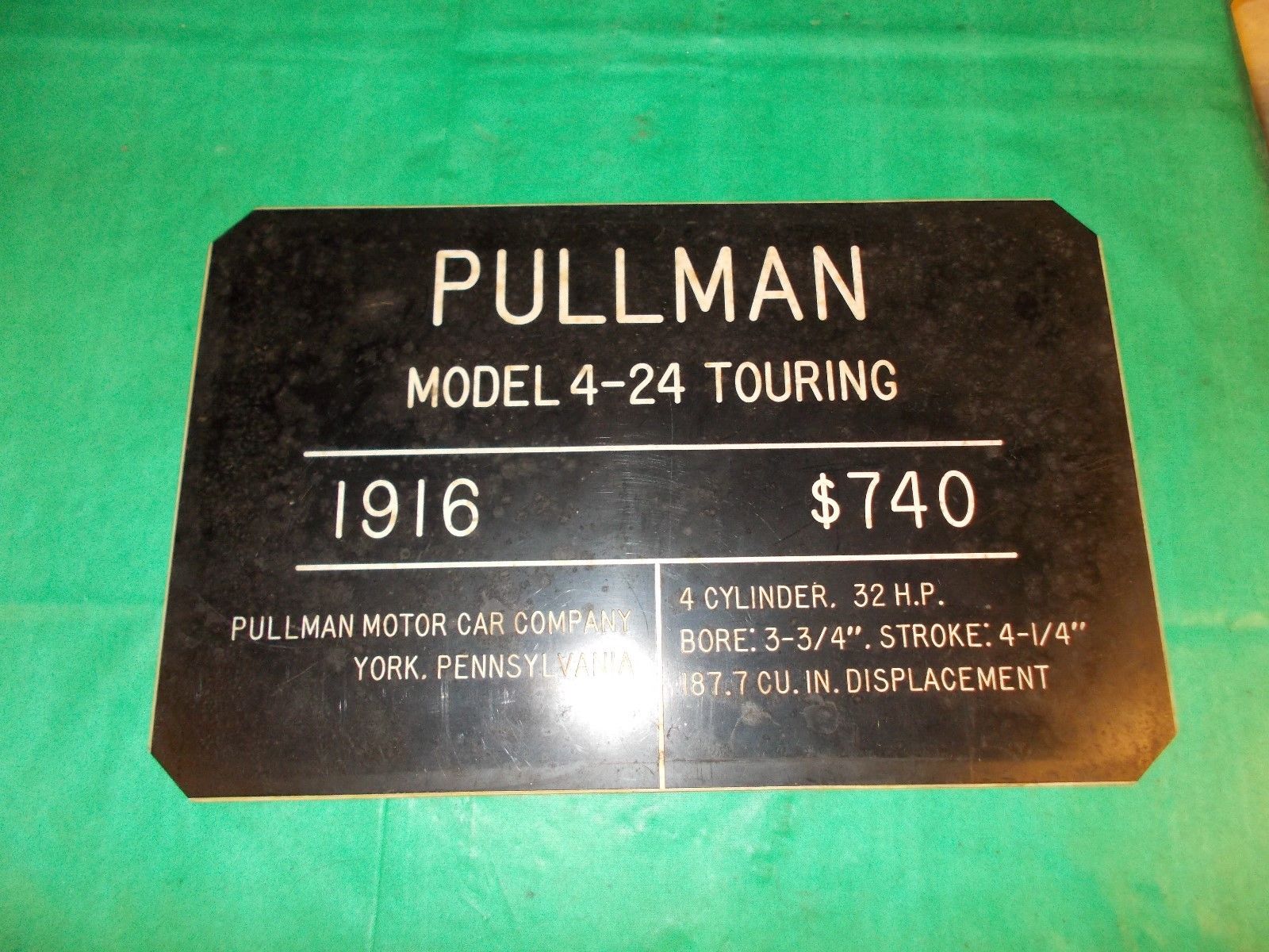 Title (ebay affiliate link): 1916 PULLMAN MOTOR CO. MODEL 4-24 TOURING CAR 10 3/4"x7" DEALER SALES PLAQUE!