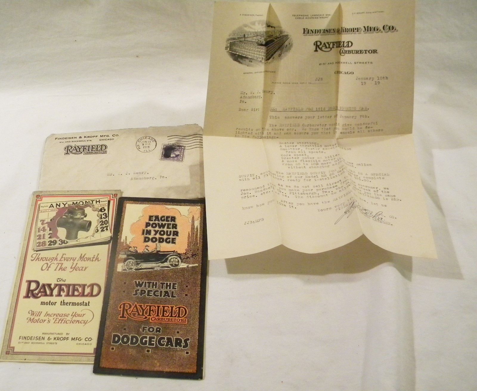 Vintage 1919 RAYFIELD Advertising Brochures Carburetors Dodge Car Thermostat