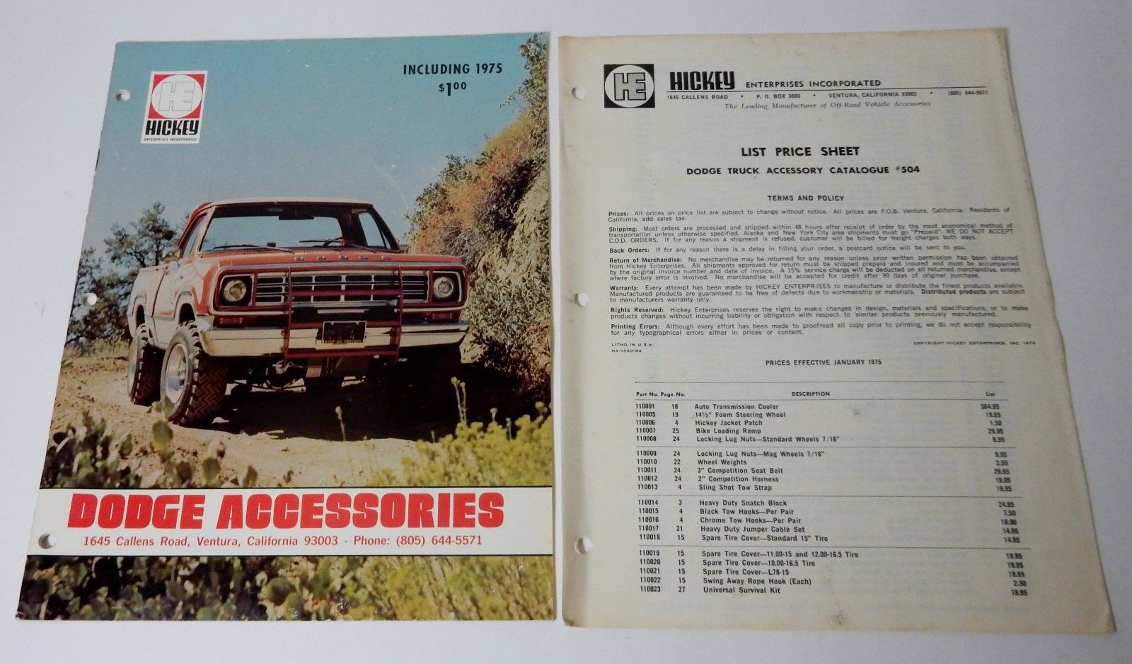 1970''s HE HICKEY DODGE TRUCK ACCESSORIES BROCHURE CATALOG ORDER FORM PRICE LIST