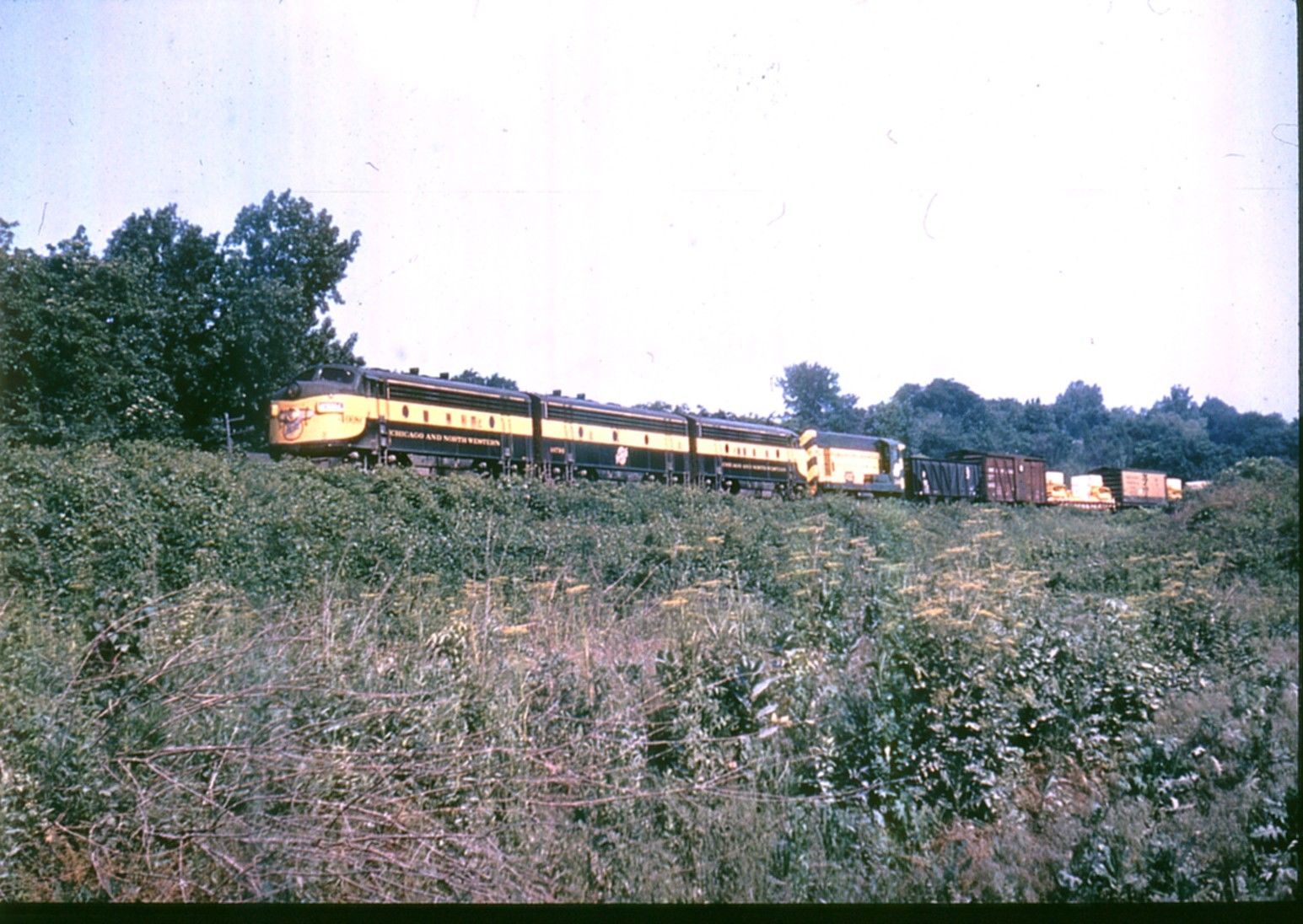 Chicago & North Western Ry # 4068C-4079B-F7A-H1244 diesel Dup 35mm Color slide