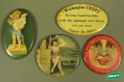 4 ANTIQUE ADVERTISING POCKET MIRRORS ANGELUS / CRISPS +